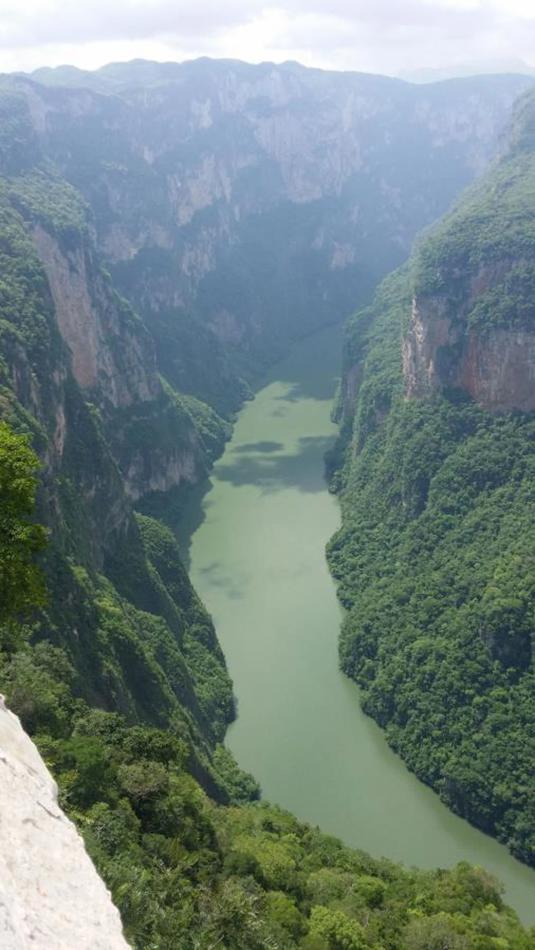 El cauce del rió es por donde pasa el rió Grijalva pasando por una hendidura que forma paredes casi verticales que se formaron con el paso del tiempo, mostrándonos esta hermosa magnificencia.