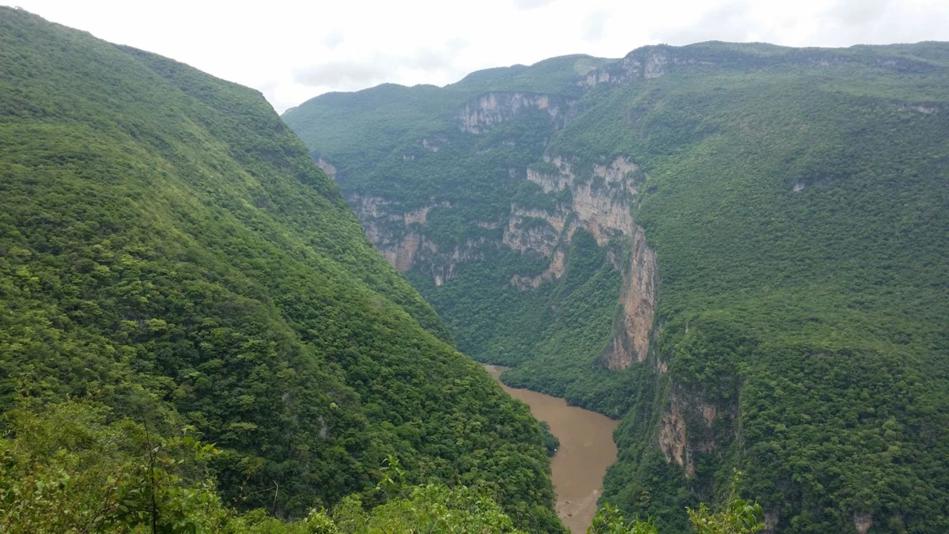 El cauce del rió es por donde pasa el rió Grijalva pasando por una hendidura que forma paredes casi verticales que se formaron con el paso del tiempo, mostrándonos esta hermosa magnificencia.
